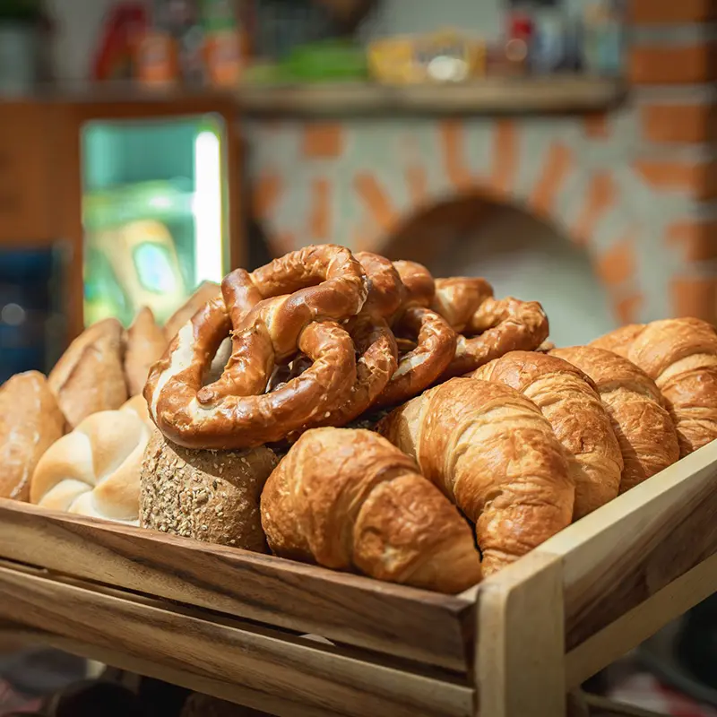 Interessant ist die Bar die rund um die Uhr geöffnet hat, an der man sich die Getränke und auch Pizzen nimmt und anschließend auf einen Bierdeckel die entsprechende Menge einträgt. Beim Bezahlen der Zimmer wird dann abgerechnet. Das Frühstück ist auch besonders: Man bestellt sich das gewählte Gebäck z.B. per WhatsApp und ab 8 Uhr stehen die frisch aufgebackenen Köstlichkeiten bereit, mit dem Namen der Hütte versehen. Nun hat man die Möglichkeit vor Ort zu essen oder sich ein Körbchen zu richten und mit in die Hütte zu nehmen. Wir hätten uns noch über etwas Süßes (Kuchen etc.) gefreut. Ansonsten gibt es eigentlich so ziemlich alles, was das Herz begehrt!