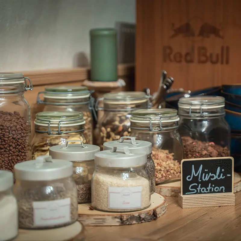 Im Hüttendorf leben wir im Einklang mit der Natur. Unser Strom kommt von Solaranlagen, geheizt wird mit Wärmepumpe – nachhaltig und zukunftsorientiert. Das Trink- und Wellnesswasser sprudelt aus einer klaren Bergquelle direkt in unsere Becken. In unserem Tante-Emma-Laden warten Milch, Käse, Eier, Joghurt und Gemüse von regionalen Bauern – genauso wie Fleisch und Fisch von heimischen Erzeugern für unsere Grillabende. So wird Genuss ehrlich, nachhaltig und echt.