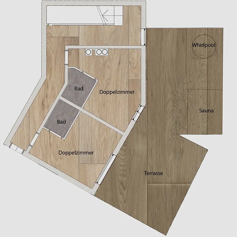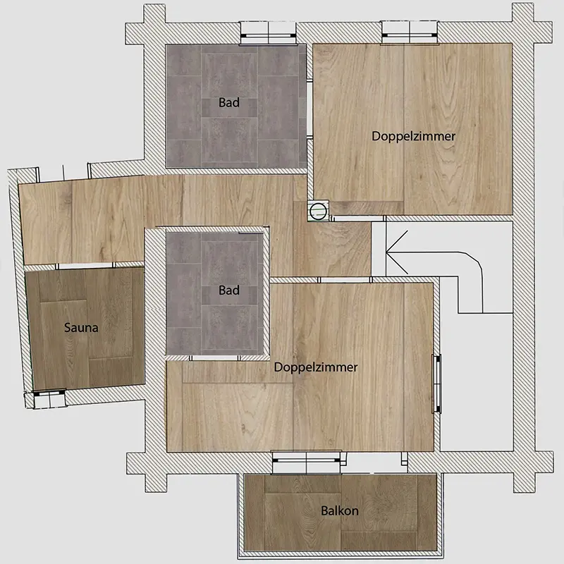 vier Doppelzimmer, Wellnessbereich mit Sauna und