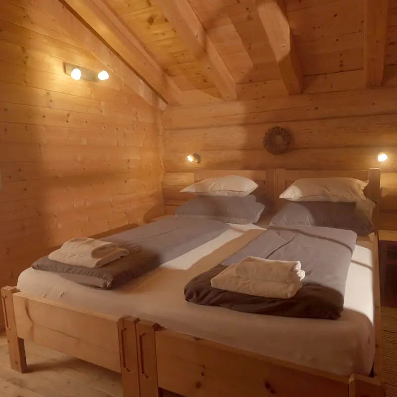 Geräumiges Chalet für bis zu sechs Personen mit gemütlichen Doppelzimmern, modernen Bädern und