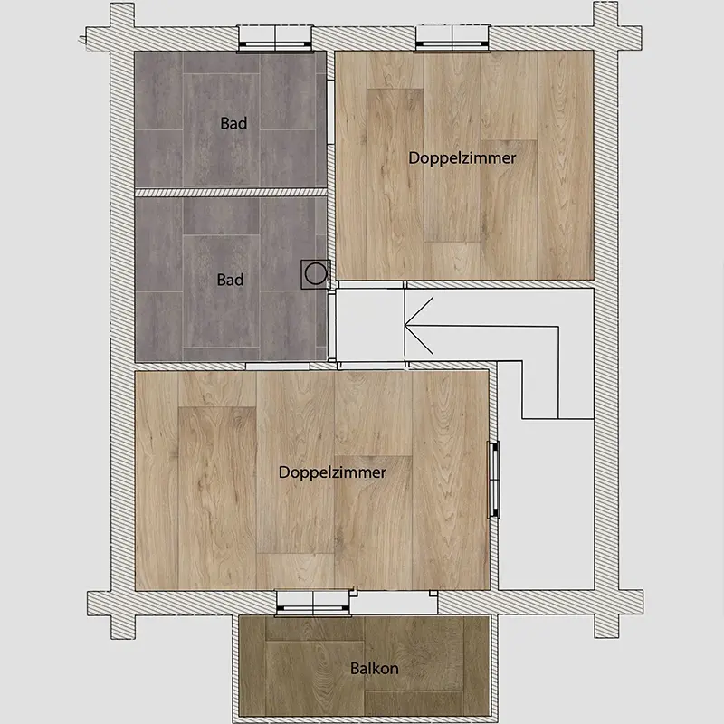 3 Doppelzimmer mit Balkon und Bad mit Dusche