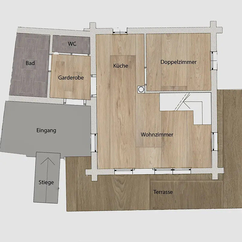 Alpines Refugium für zwei bis sechs Personen mit gemütlichen Doppelzimmern, modernen Bädern