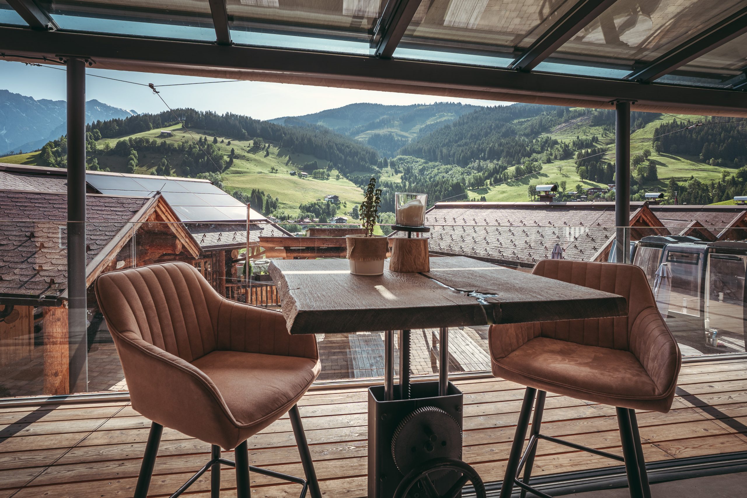 Wir hatten in unserer Hütte eine Panoramasauna mit extra großem Fenster und mit Blick auf die Berge. Hier kann man so richtig entspannen. Am frühen Morgen, in der Schaukel auf dem Balkon den Kuhglocken lauschen- herrlich!